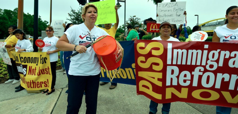 Outside, the impressively diverse coalition of social justice groups came from up and down the I-4 Corridor, including Organize Now, Fight for 15, Mi Familia Vota, Florida Climate Action, SEIU, Young American Dreamers, Young Dems (and some older Dems), I think I even saw a Green or two. There were many who were still coming as I was leaving, and quite a few I noticed who came solo because they saw the Facebook notice. I’d say more than 100 people turned out over the course of the event.