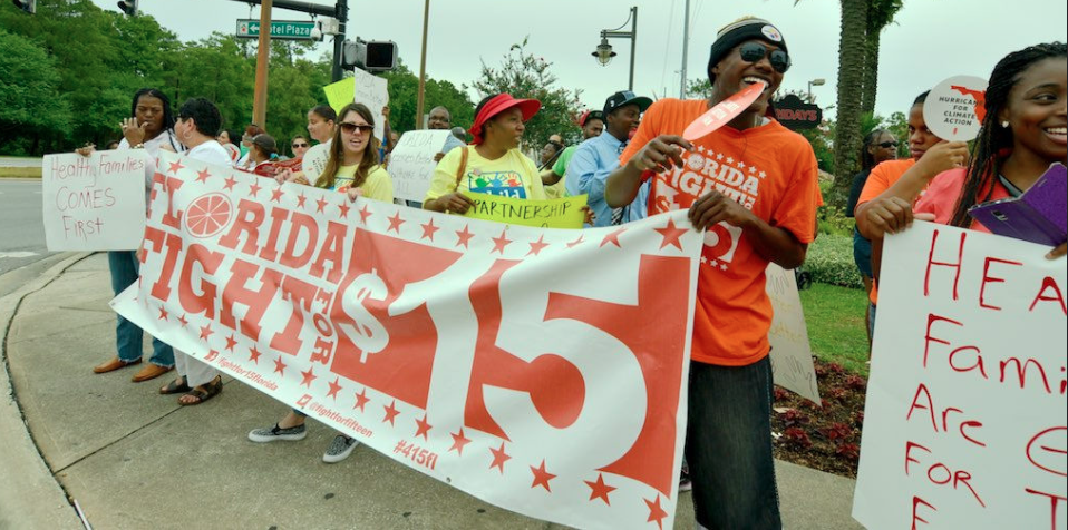 The “Florida Deserves Better” than Fantasyland action was held Tuesday, June 2 outside of the hotel where Rick Scott held his “cattle call” for GOP candidates to strut their campaigns in front of monied-up interests like the Chamber of Commerce and their members. Billed as an “insider” event, it was never meant to be a big attention-getter. This gathering was held to stuff money into pockets as discreetly as is possible in Florida.