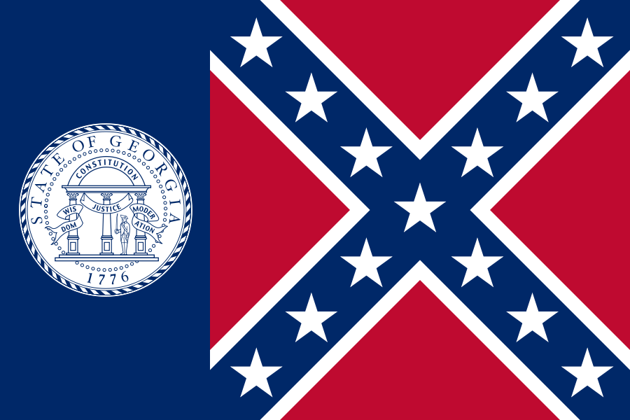 Two years earlier, New York Republican Governor George Pataki had the Georgia flag pictured below removed from the hall of flags at the NY State Capitol in Albany. Pataki is running for President this year as well. Georgia eventually replaced its flag in 2002 under Governor Roy Barnes who was then upset in his effort for reelection. Barnes is the last Democrat to have been elected Governor of Georgia. Prior to his defeat the Republicans had not won the Governorship since Reconstruction ended.