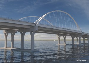The massive reconstruction and building of a signature span of the nearly 3-mile long Pensacola Bay Bridge will begin shortly. The current Pensacola Bay Bridge was built in 1960 and reached its projected 50-year lifespan in 2010. After a long process with public input, the design which is pictured to the right will be the look of the bridge which is completed in 2019.