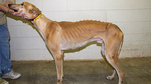 Greyhound racing in toto is every bit as cruel as dog fighting. Underperforming dogs are killed, animals die while racing—three per day in Florida—and many perish from inhumane living conditions, overbreeding and injuries obtained on the track. Female racers are pumped full of anabolic steroids to interrupt their estrus cycle, and goose performance. A female who is a good racer is rewarded with a lifetime of breeding, confined to a cage that she can barely stand up in. Even the “best” kennels are known for caging as much as 22 hours a day, feeding racers a diet of foul meat mixed with charcoal.