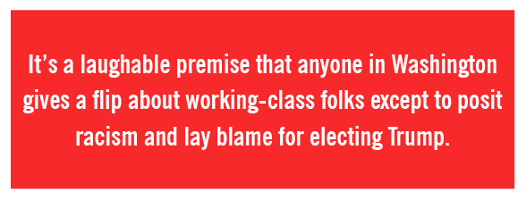 Since inauguration it’s been taken as gospel that racist white working class folks elected Trump. Let’s at least be honest. We haven’t been the least bit interested in courting their votes. The narrative has been the opposite. I was at a Daily Kos gathering this spring where it was taken for granted that white working class Trump voters “are not worth our time,” and we should “never knock on their doors again.” Another suggested they be taken out of the VAN, because if you don’t see them, I suppose they will cease to exist. Liberal leaders have even described about how white working class folks deserve to die from lack of healthcare.