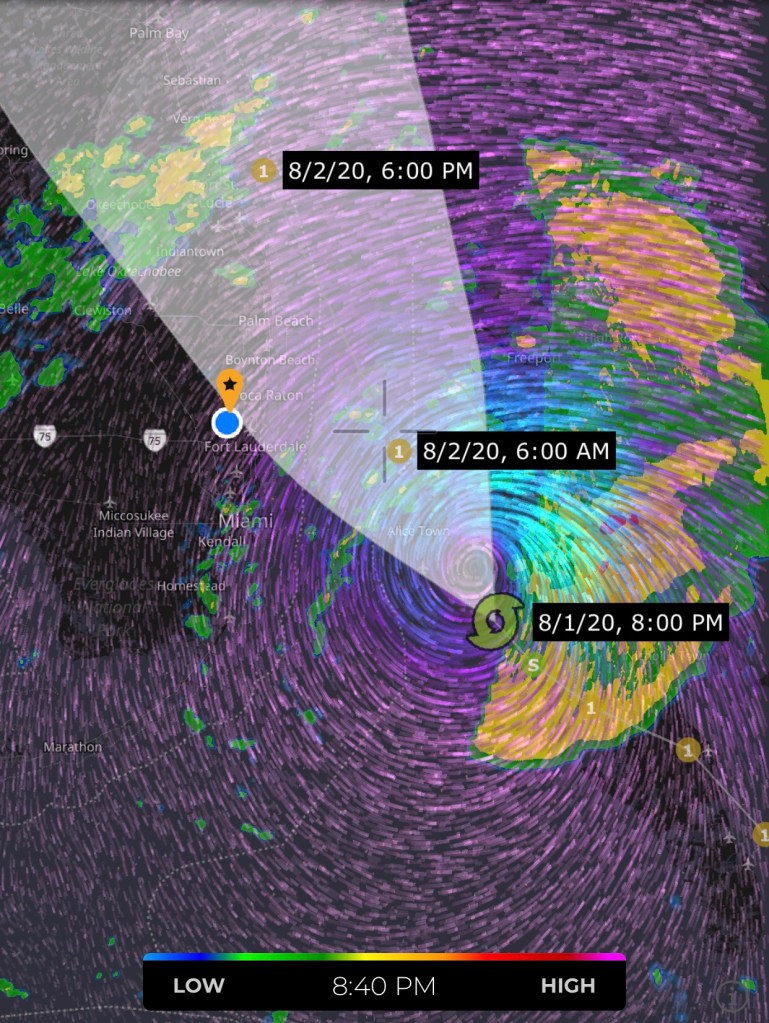 However, with Isaias near miss this past weekend, the three counties of southeastern Florida have now dodged four bullets in five years. How close has the region been to being badly hit? Just look at the graphics below.