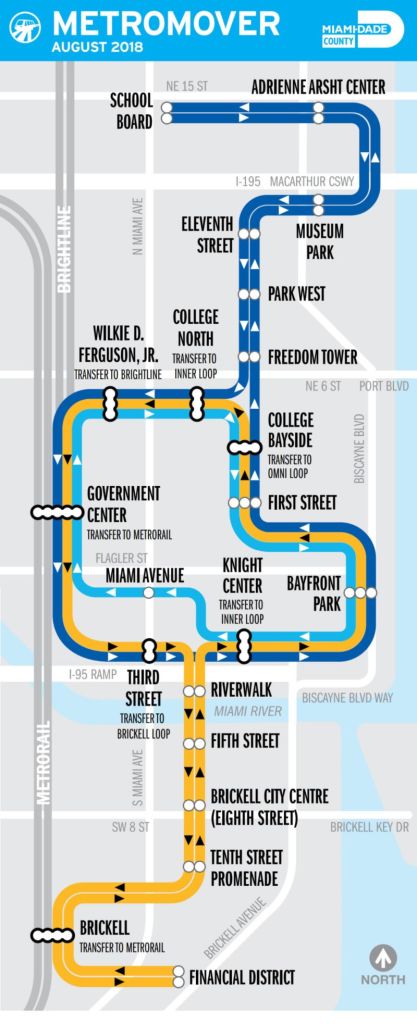As Miami’s downtown area has grown, more and more riders have used Metromover, which links onward to Metrorail (At the Government Center and Brickell stations) and Tri Rail via Metrorail (Orange Line) at the MIC and Metrorail/TriRail Transfer (Green Line) stations.