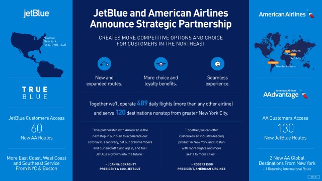 Last year, two financially struggling US airlines that vigorously compete with each other in the Northeast, Florida and on transcontinental flights announced a partnership that covers the New York and Boston markets. This week, the first pieces of the American-JetBlue partnership fell in place.
