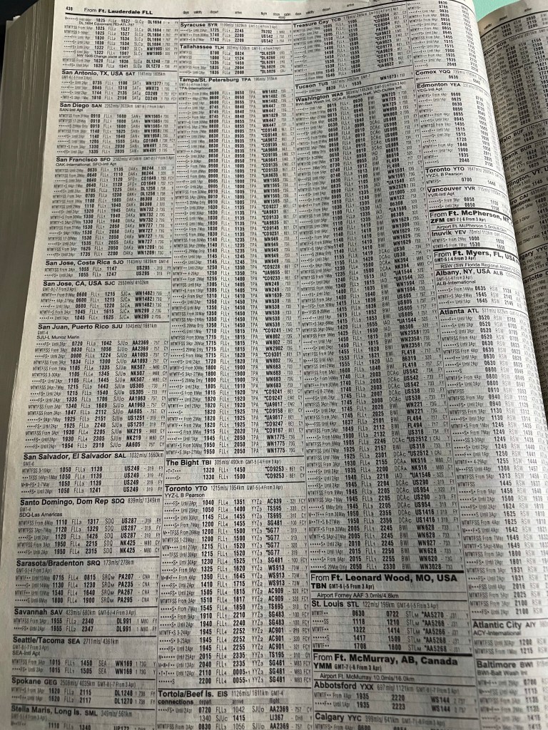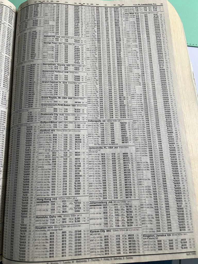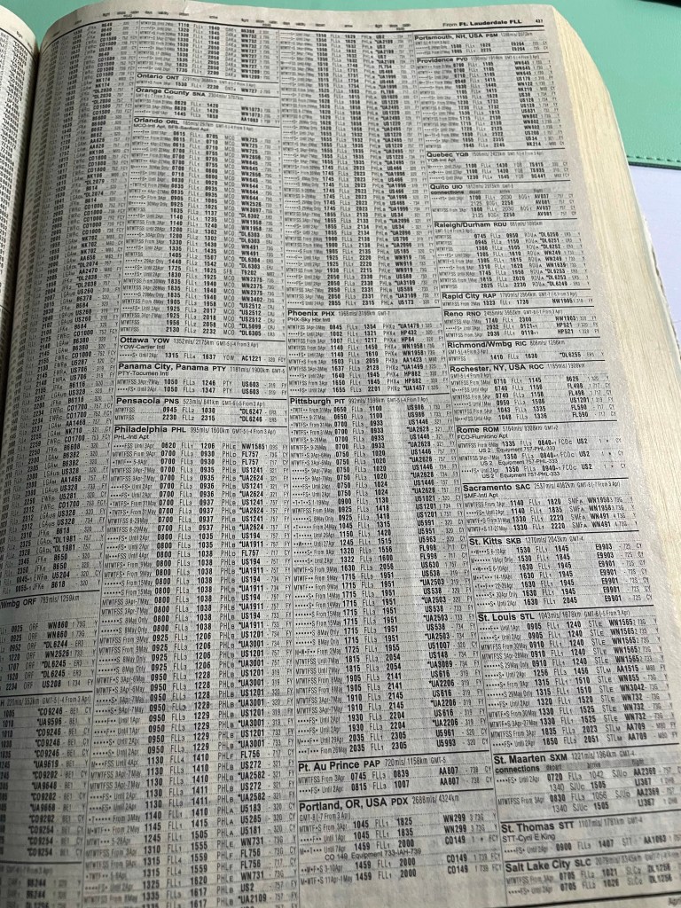 – Only flight to South America was Avianca’s daily Fort Lauderdale-Bogota service (besides a once-daily flight to Guyana on now-defunct Guyana Airways) . Today FLL has somewhere in the neighborhood of 15 daily nonstops to South America when not COVID-impacted.