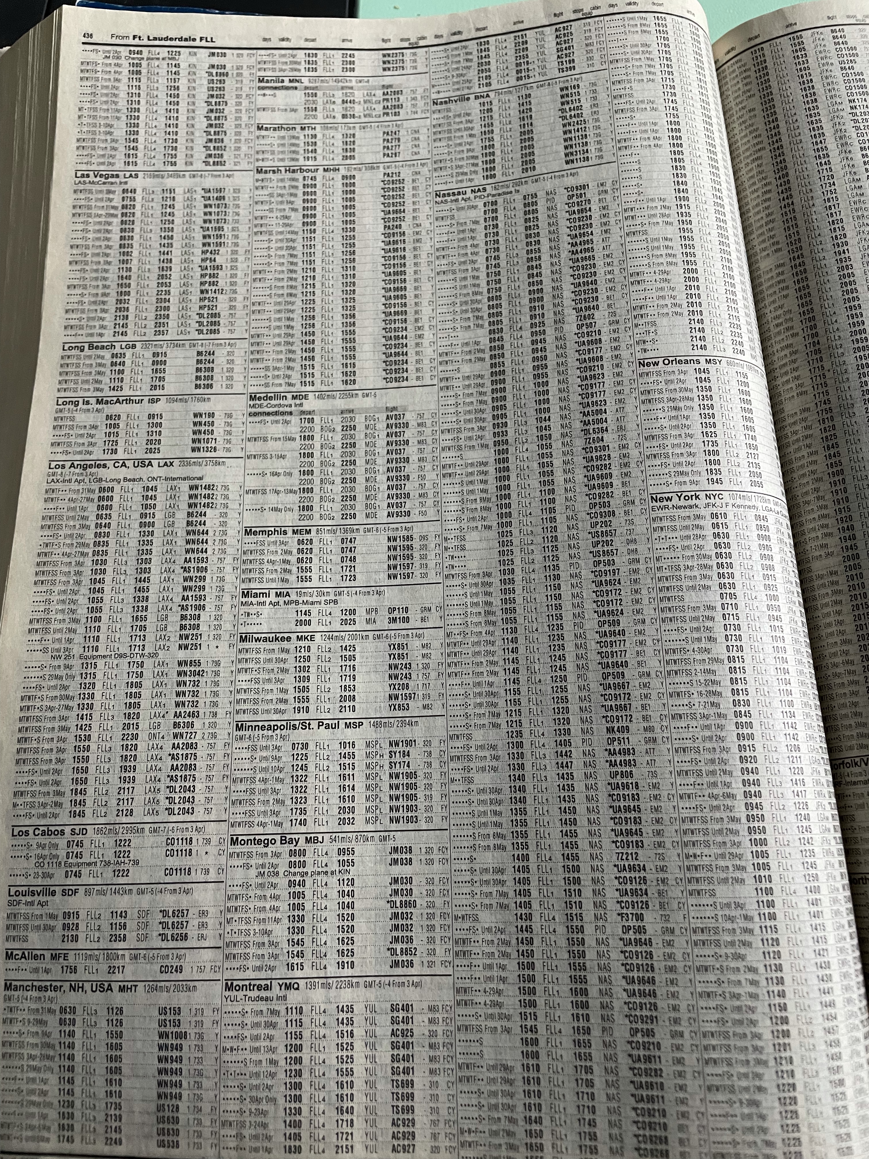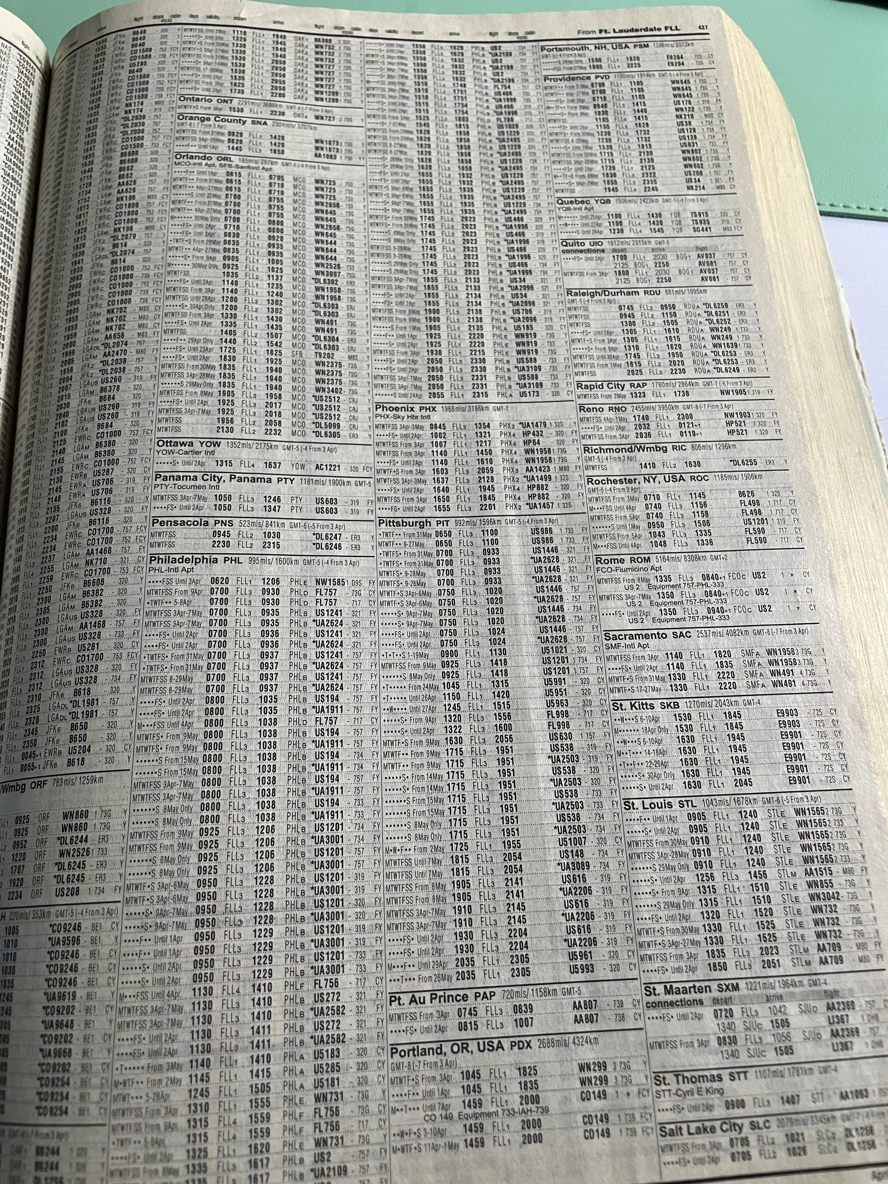 – Most service to the Caribbean and Central America from Fort Lauderdale was on network carriers American and US Airways. Both operated focus cities at FLL at the time. Today the vast majority of service to the Caribbean, Central America and South America is on low-cost carriers, Spirit, JetBlue and Southwest. It should be noted American in 2021, has restored Fort Lauderdale-Port-au-Prince service listed in this 2005 OAG and previously dropped around 2017.