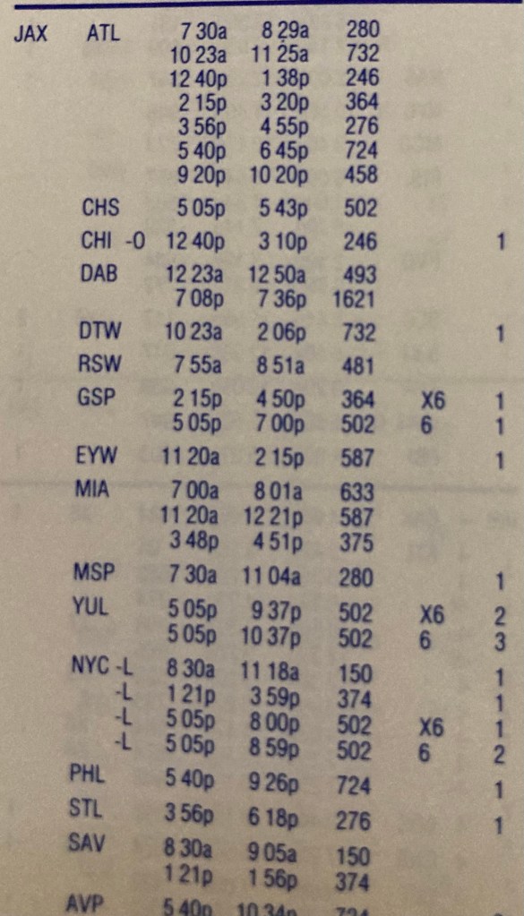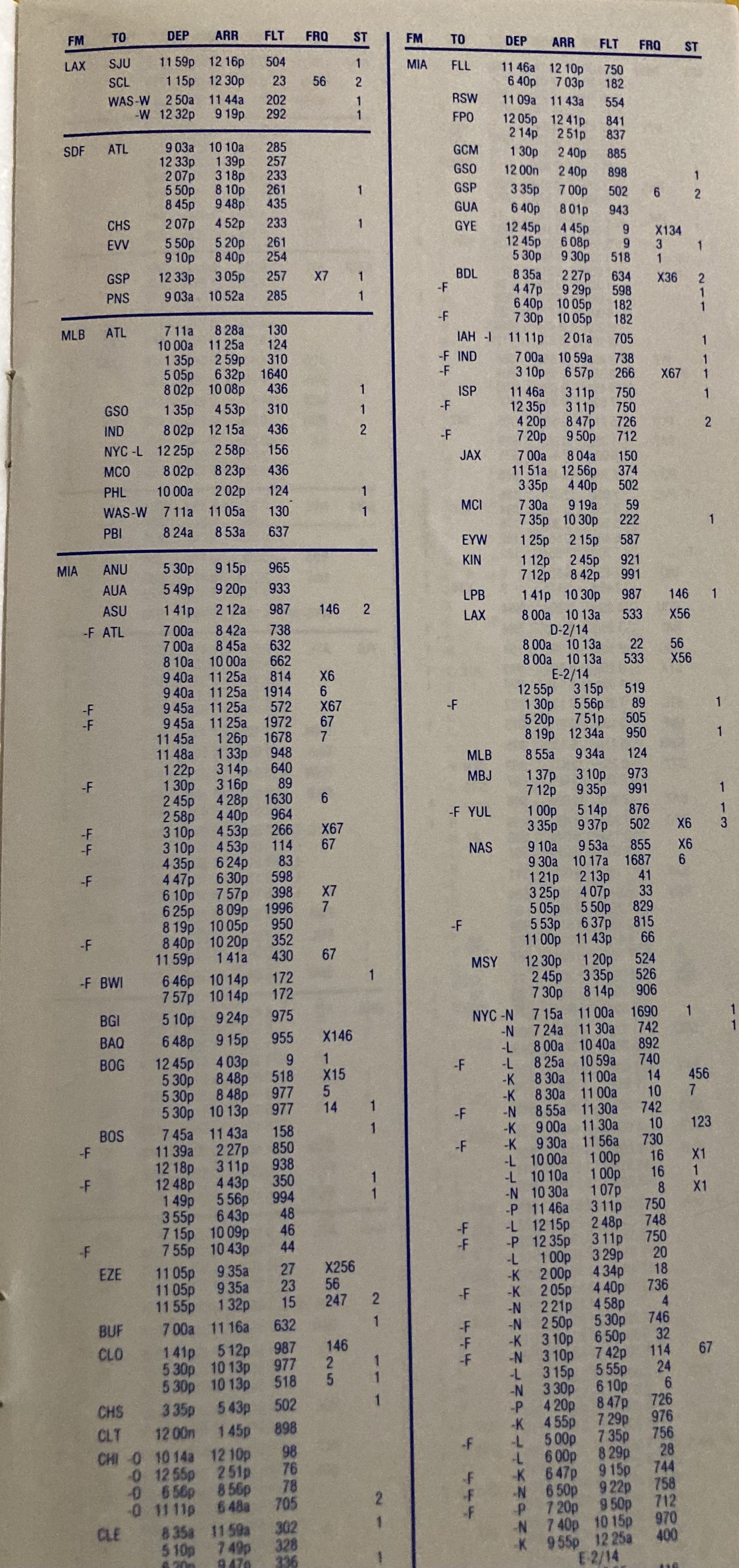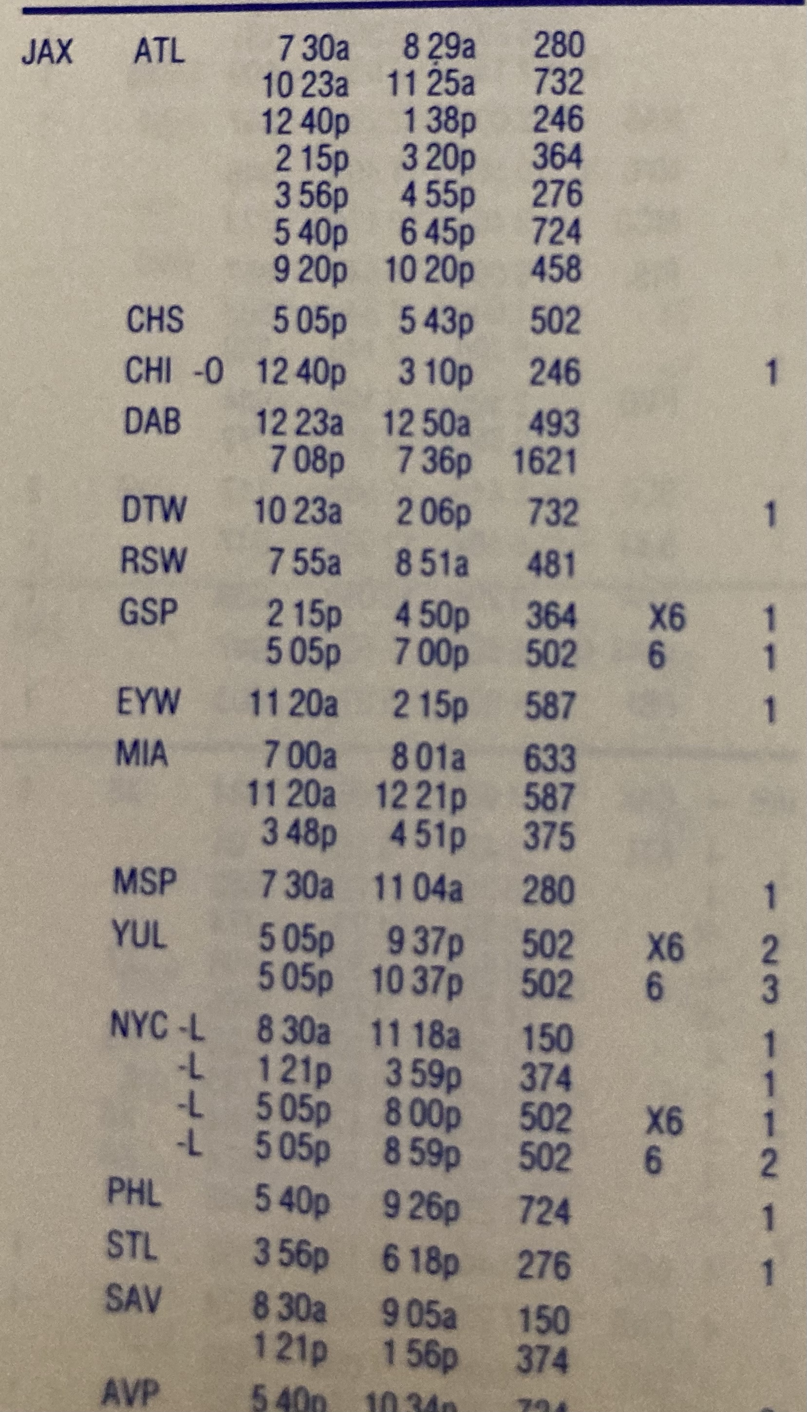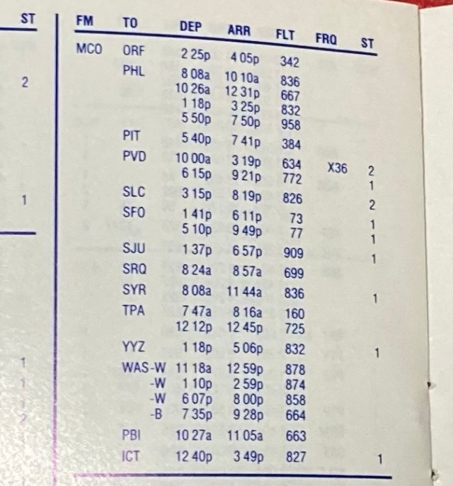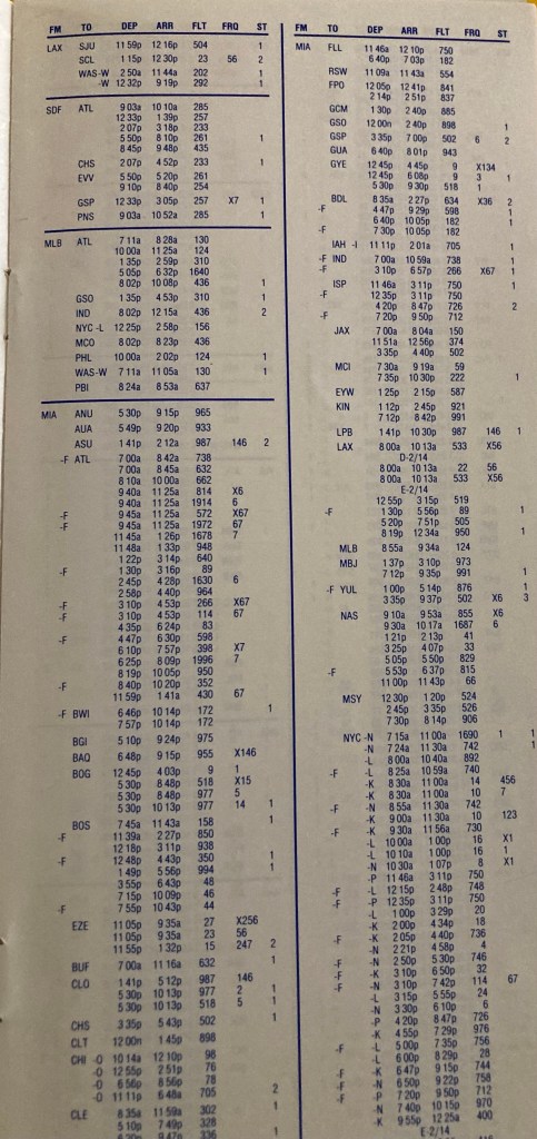 So let’s look at Eastern’s Florida operations, airport by airport in January 1987. The below and information and photos are from the internal employee timetable given to flight crews.