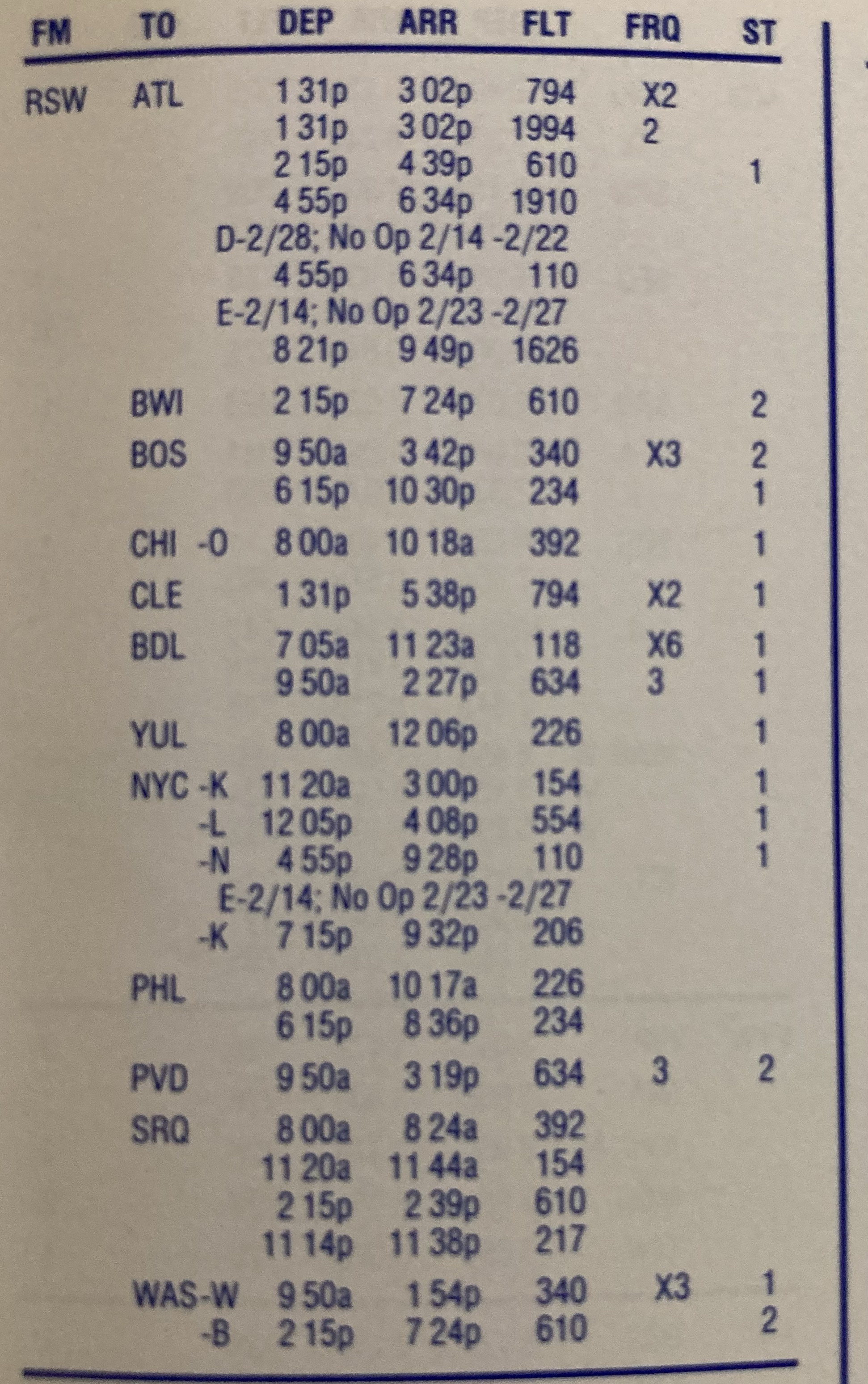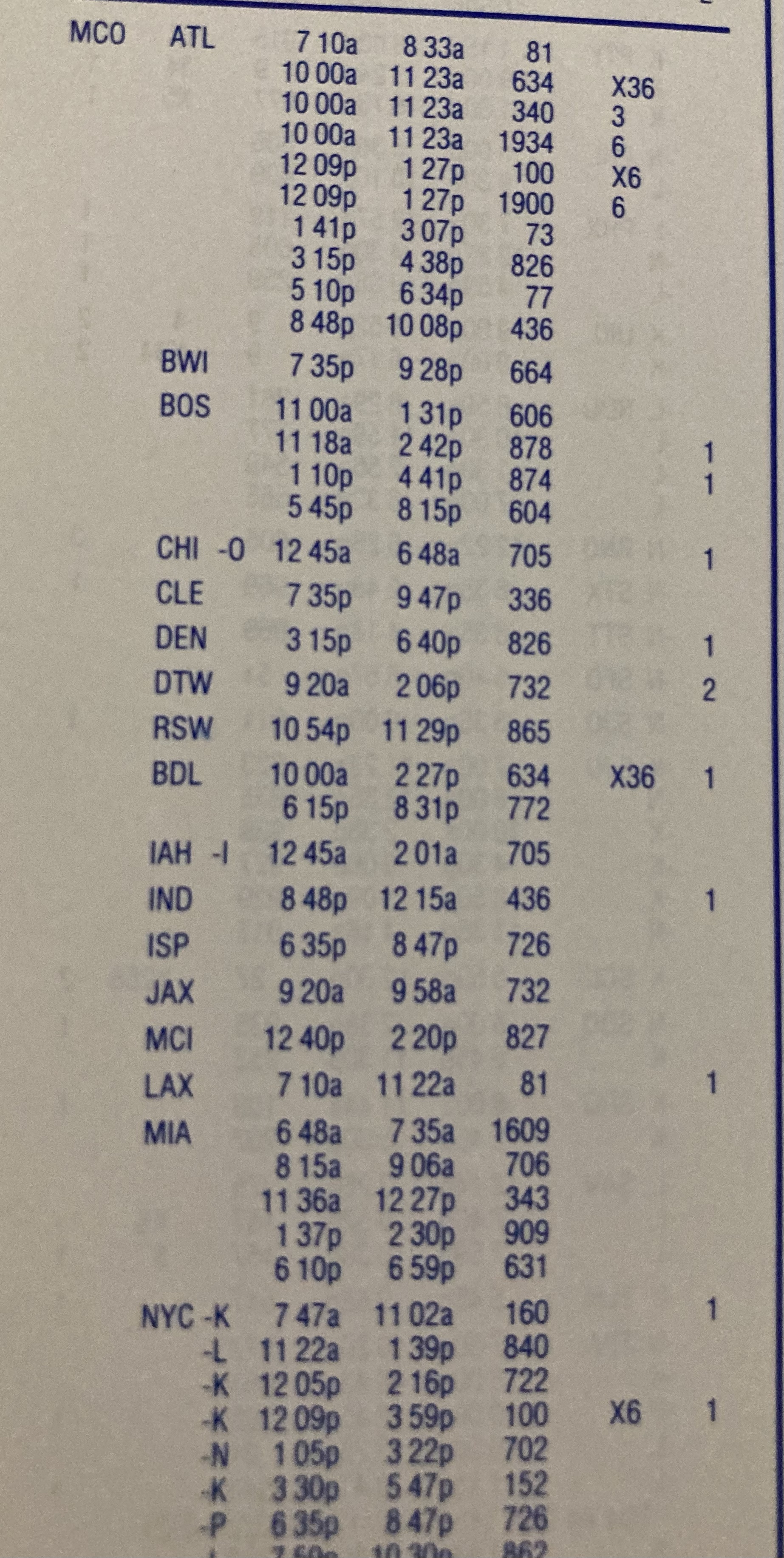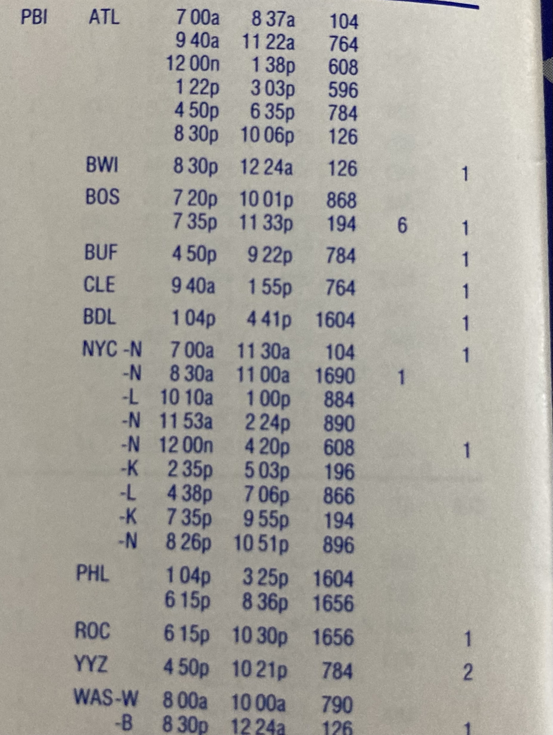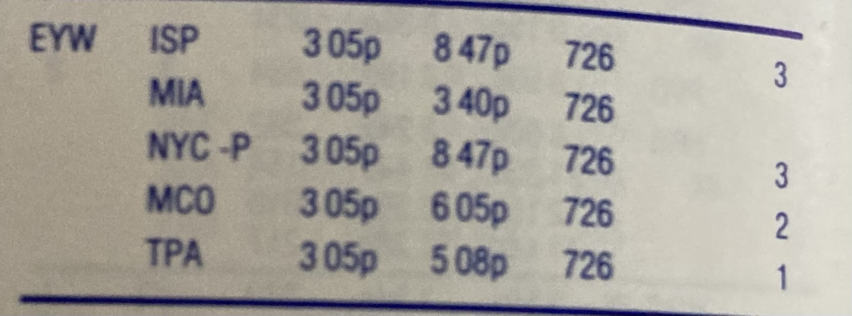 So let’s look at Eastern’s Florida operations, airport by airport in January 1987. The below and information and photos are from the internal employee timetable given to flight crews.