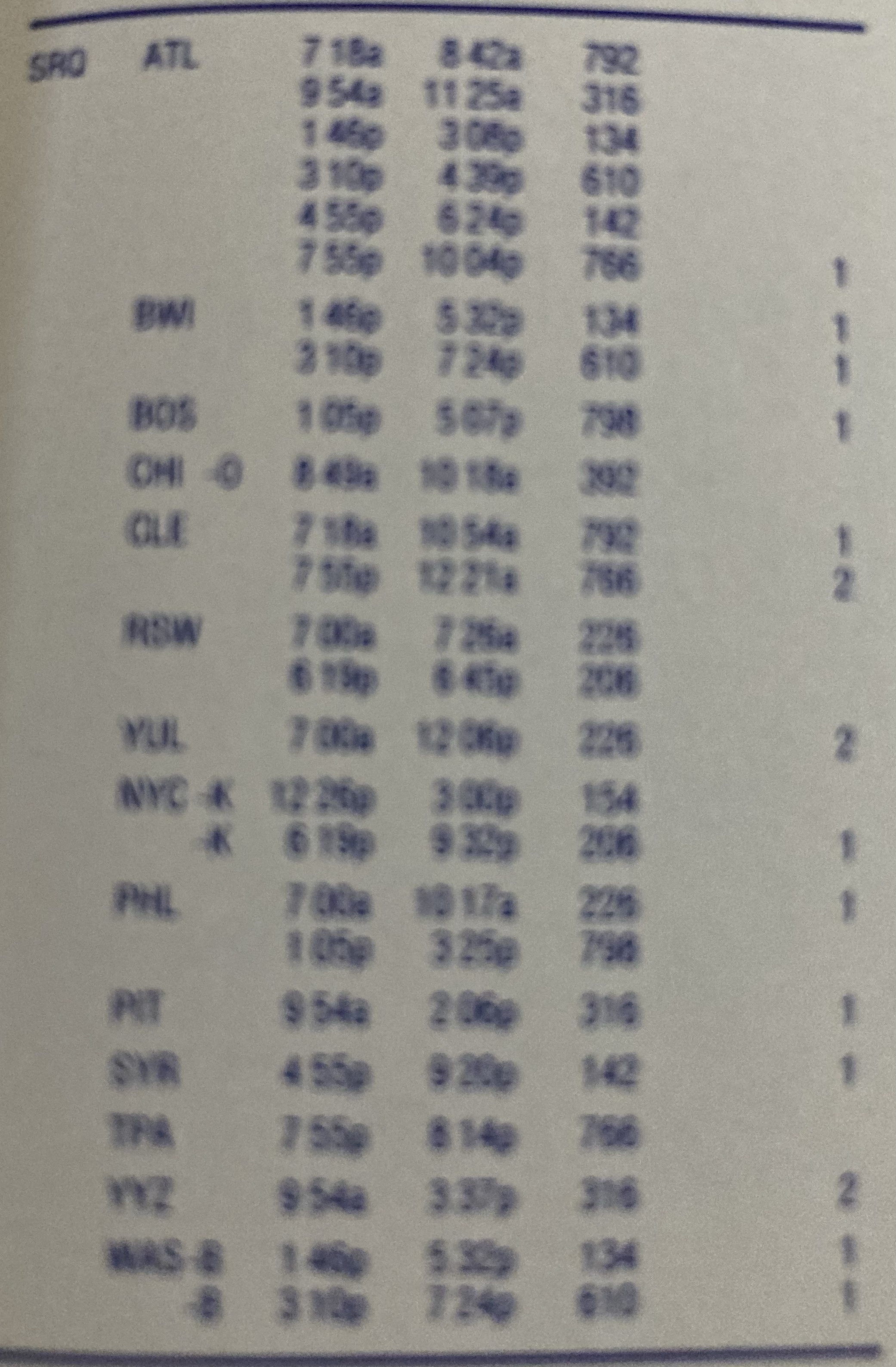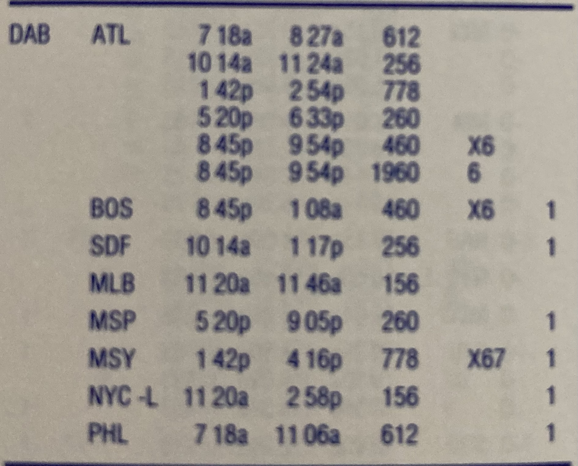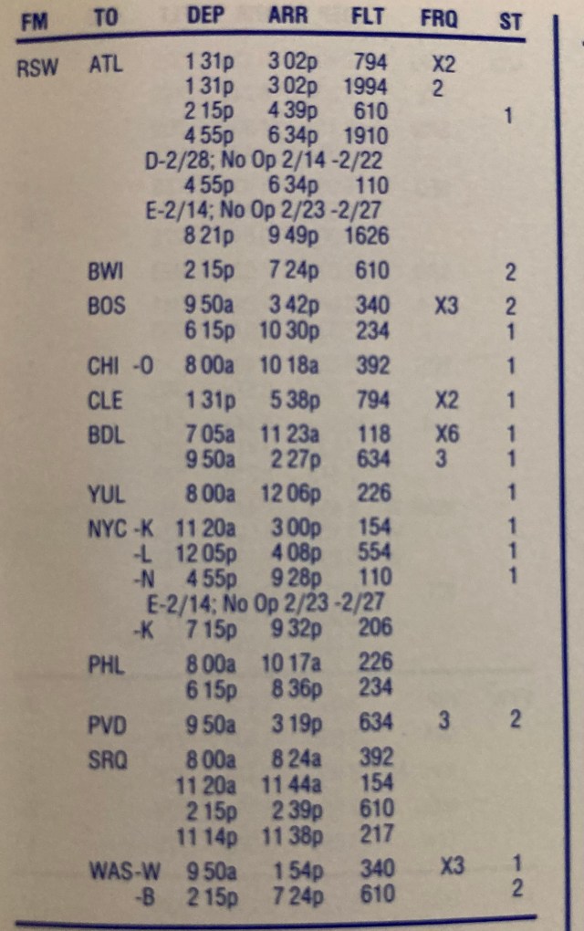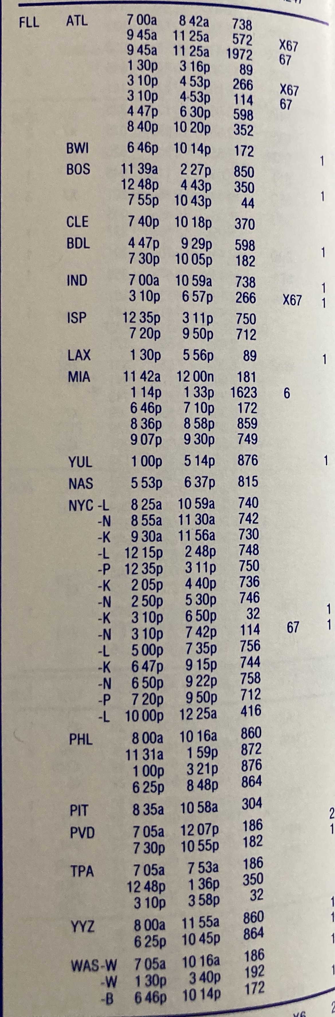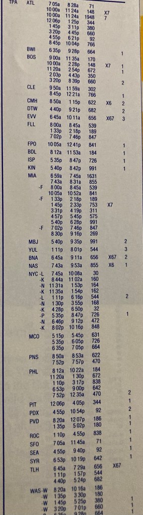 So let’s look at Eastern’s Florida operations, airport by airport in January 1987. The below and information and photos are from the internal employee timetable given to flight crews.