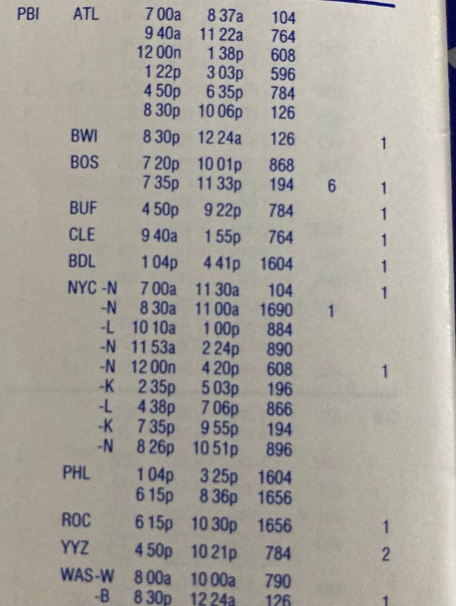 West Palm Beach service – nonstops to Atlanta, Boston, New York-JFK, New York-LGA, Newark, Philadelphia, Washington-DCA