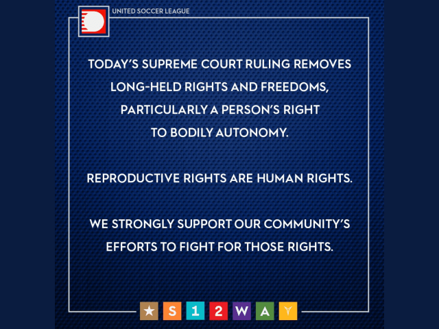 Within an hour of Friday’s Supreme Court ruling on reproductive freedom, Tampa-based USL which governs the second divisions in the US both on the men’s and women’s side as well as one of the third and fourth level men’s divisions came through with a strong statement that left no ambiguity.