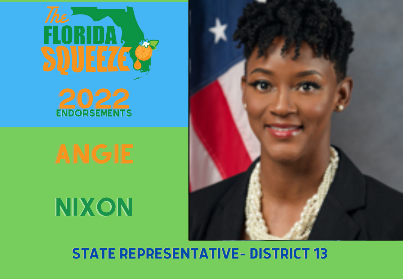 Rep. Nixon’s strong leadership in the fight against Governor Ron DeSantis unprecedented intrusion into the state’s reapportionment process complemented her strong stands on issues of women’s rights and social justice. In addition, she’s been a tireless advocate for cleaner drinking water and helped lead opposition to FPL’s net metering initiatives that would have crushed affordable rooftop solar in this state.