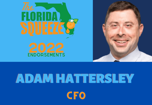 Former State Representative Adam Hattersley, a Navy Veteran is a great candidate for Chief Financial Officer and will work secure Florida’s future in a progressive and transparent manner. We strongly endorse him against current CFO Jimmy Patronis who has been a disappointment.