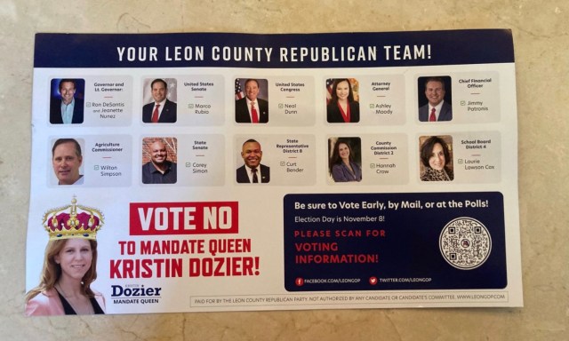 But the GOP in Leon County also believes re-electing Mayor Dailey is a priority. Check out this mailer from the local party.