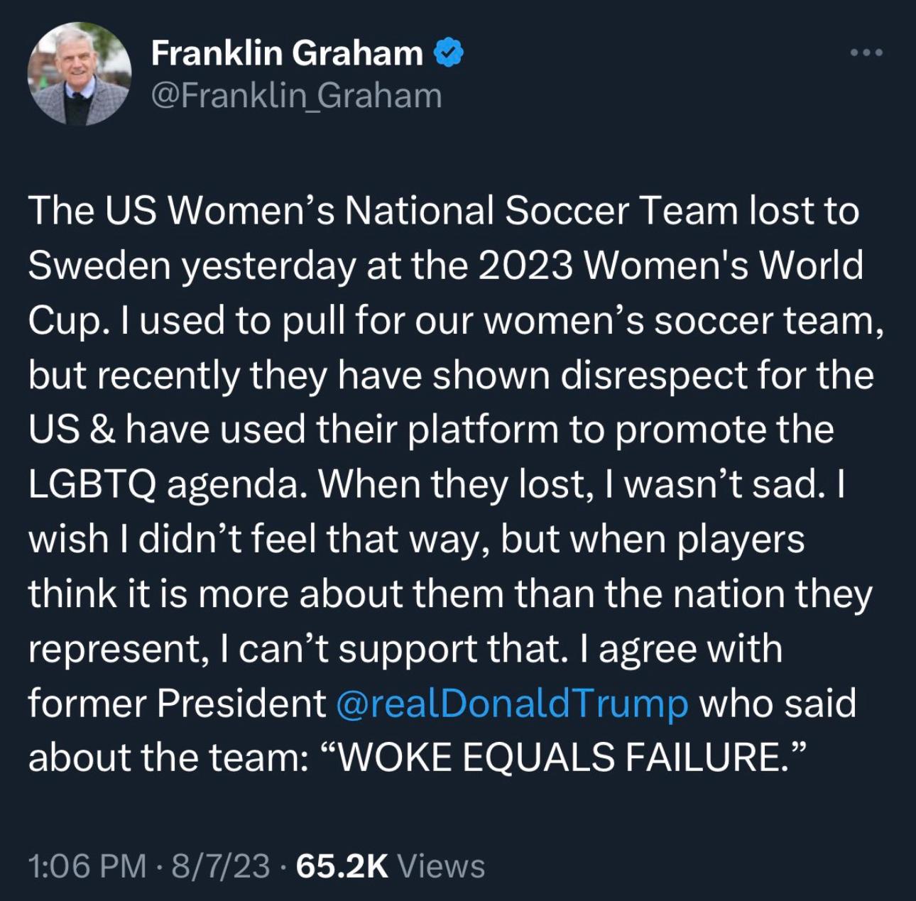 Similarly, this Women’s World Cup made me, somebody who wanted to sit out of the culture wars (or actually work to find common ground with the other side) open my eyes to reality. I’m no longer going to be naïve nor feign ignorance as to the true intention of many on the right.