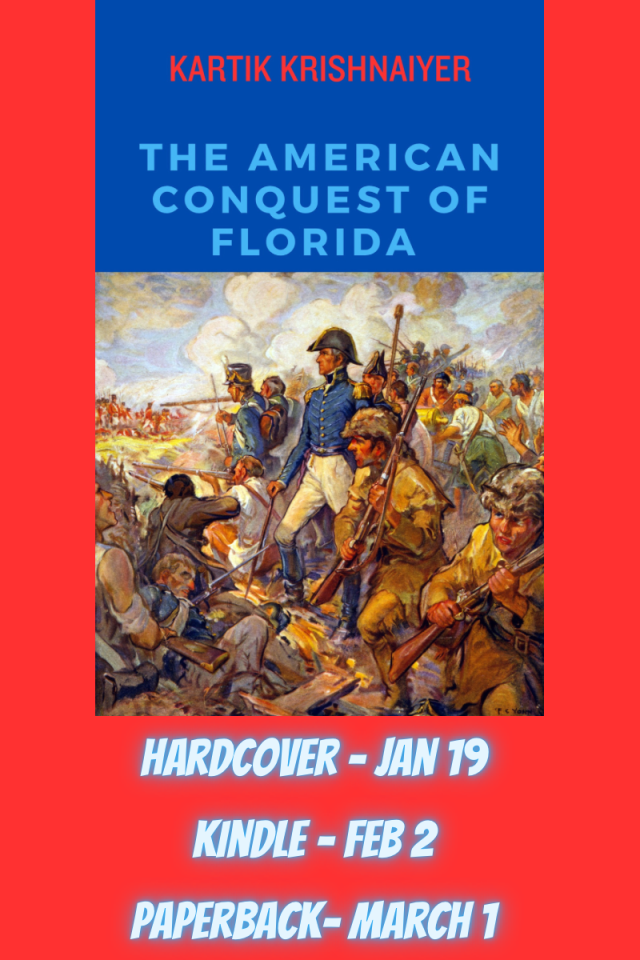 Andrew Jackson’s legend was cemented by his actions in Florida – which were arguably illegal and almost certainly morally highly questionable. Jackson’s actions drove Florida into the United States. While Spain ceded Florida by treaty, in reality the US conquered Florida.