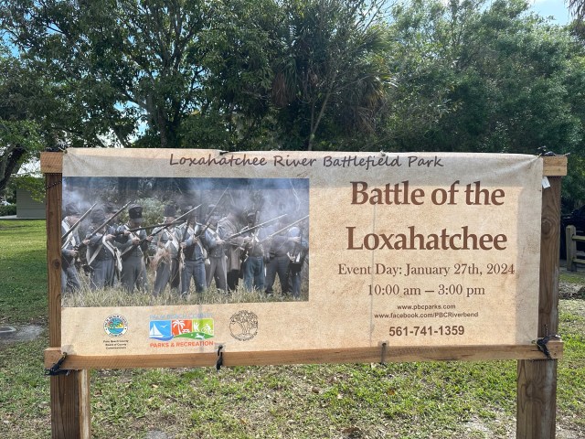 On Saturday this past week, the 1838 Battles of the Loxahatchee were reenacted at Battlefield Park in Jupiter Farms.