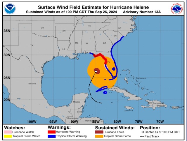 The NHC has indicated Helene had reached Category 4 strength with maximum winds around 120 MPH as of 2:25 Eastern.