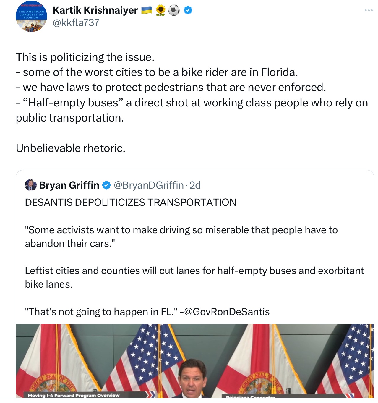 DeSantis politicizes transportation and declares war on working class and multi-modal transit