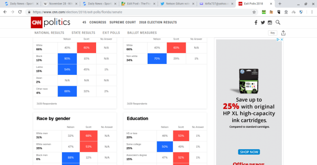 Election night and the morning after many around the Democratic Party and the national chattering classes were spinning that racism must have been the reason Bill Nelson received more votes than Andrew Gillum statewide (outside ballot error-driven Broward County). I pushed back on this suggestion because I don’t like the Democrats obsession with race and […]
