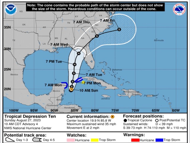 Overnight on visible radar we saw deeper convection and a tropical system that was forming a definitive shape. This morning, the modeling clearly indicated a storm that probably will be a major Hurricane (cat 3 or higher) at landfall somewhere on the west coast of Florida. My greatest fear in the storm is that the […]