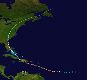 Based on reports from the Hurricane Hunters, Floyd briefly attained hurricane status on October 12. Around the same time, the nearby cold front spawned a low pressure area that cut off the hurricane’s inflow. While moving through the Florida Keys, Floyd became the only hurricane to affect the United States that year. However, its convection was rapidly decreasing over the center due to the front, and shortly thereafter Floyd weakened to tropical storm status. The circulation became nearly impossible to track on satellite imagery,[1] although surface observations indicated it passed just south of Miami, Florida. The storm underwent extratropical transition as it weakened over the Bahamas .