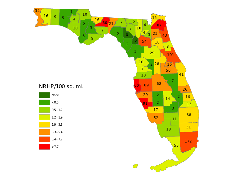 The above map shows the distribution of officially designated National Historical sites by Florida county. Not surprisingly, Miami-Dade which has been home to Florida’s most metropolitan city for a hundred years has by far the most with 172. However, somewhat surprisingly Volusia County has the second most designated sites with 101 and Sarasota is third […]